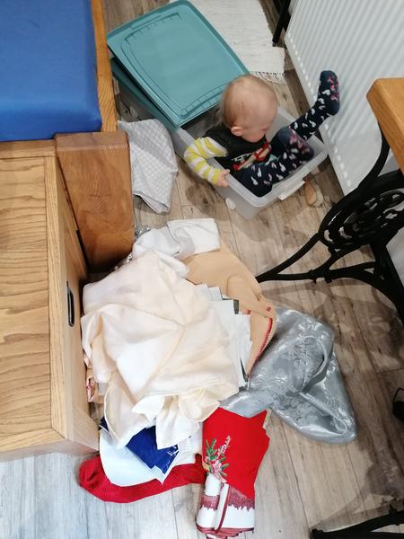 @sutaz.. Náš syn má 16m, ale je nezastavitelny... Kebyže máme doma lustre vyštveral by sa aj na tie. 🤷♀️🤦♀️🤣.... Zatiaľ stihol vyjsť "iba" na parapetu, kuchynský stôl, vopchať si ruky do záchoda🙈.... A samozrejme pravidelne vyhadzuje všetky šuflíky v spálni a skrinky v kuchyni.... Naposledy to bolo niečo takéto 🤣... Ja to volám, že minúta ticha😭