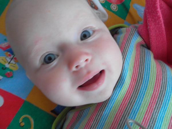 Na prvej fotke má Sofinka 3 mesiace a na druhej má 1 rok a 1 mesiac