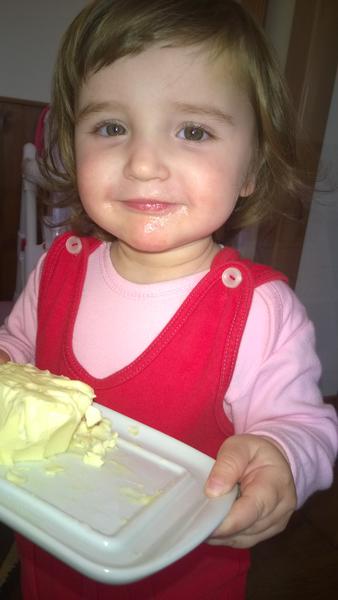 Tretia dcérka, keď začala papkať príkrmy asistovali mi pritom už naše "veľké slečny", zeleninka jej veľmi nechutnala, ale jogurty áno, ale vlastne z každého trochu zjedla, ale chcela jesť sama, takže jedlo sme mali vade na stoličke, na vlasoch, obruse, po každom jedle, nás čakalo prezliekanie a upratovanie, ale maličká bola šťastná a to je hlavné.