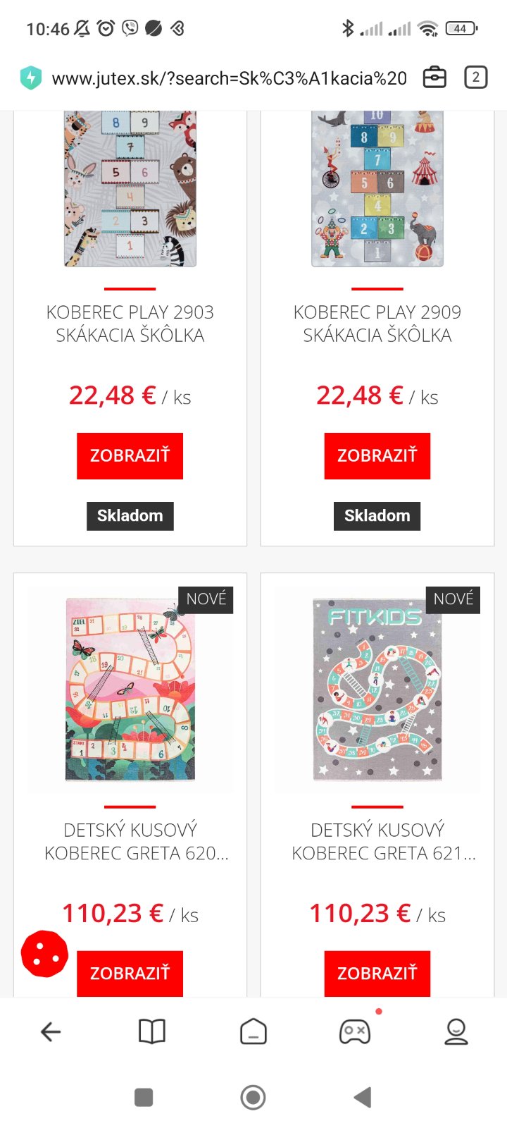 Na koľkých kobercoch z kolekcie detské kusové koberce je motív skákacia škôlka? Nápovedu nájdete na stránke jutex.sk.
