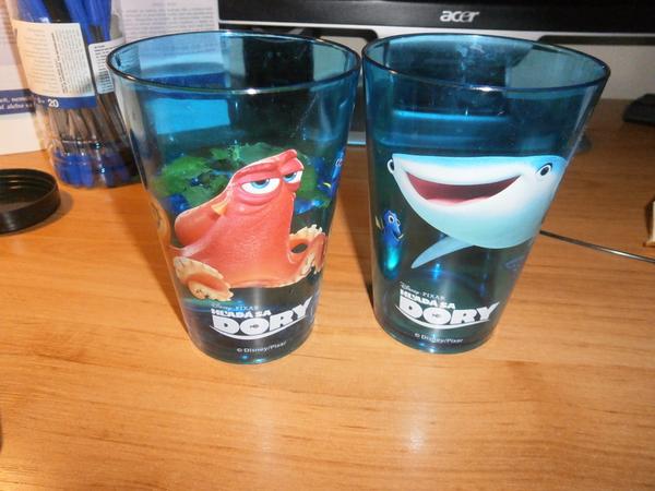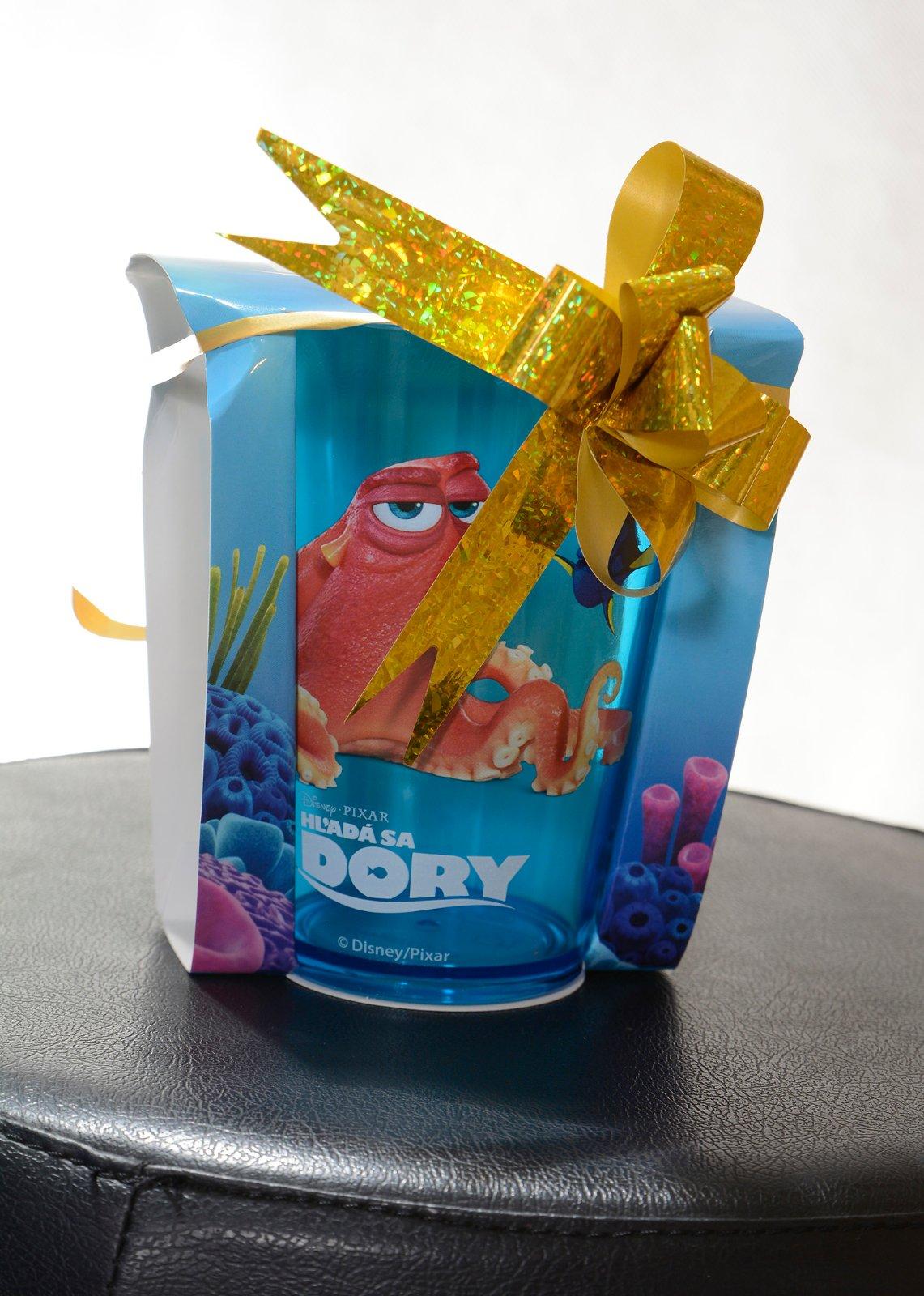 zatiaľ máme kúpený len jeden a poslúži ako narodeninový darček pre moju 4 ročnú krásku, ktorá bola s nami v Kine na Hľadá sa Dory a veľmi sa jej to páčilo. dúfam, že sa mi podarí skompletizovať do narodenín celú zbierku 🙂 no ak by k poharikom pribudli aj ďalšie darčeky s Dory, moju princeznú by darčeky veeeľmi potešili.