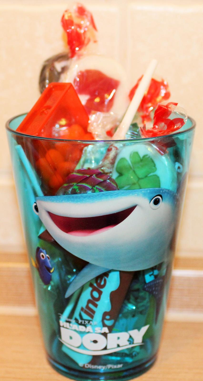 Takže zľava: Martin a Nemo,Hank,Dory, Viera. U nás sa používajú hlavne v kuchyni. Deti majú z nich radi kakao, čajík, malinovku. Iné poháre už nechcú,takže pokračujeme v nákupovani aby bolo čo najviac pohárov hľadá sa Dory.