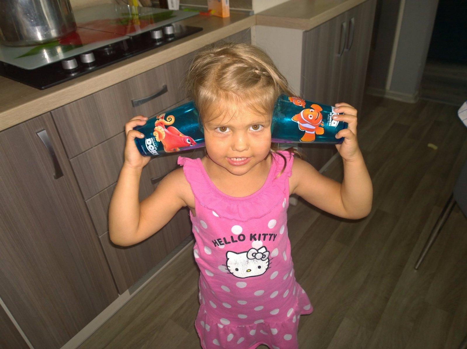 Presne ako na našej foto kde dcérka takto dodržuje pitný režim v tento horúci deň 🙂 a pozeráme Hľadá sa Nemoooo 🙂 😅
