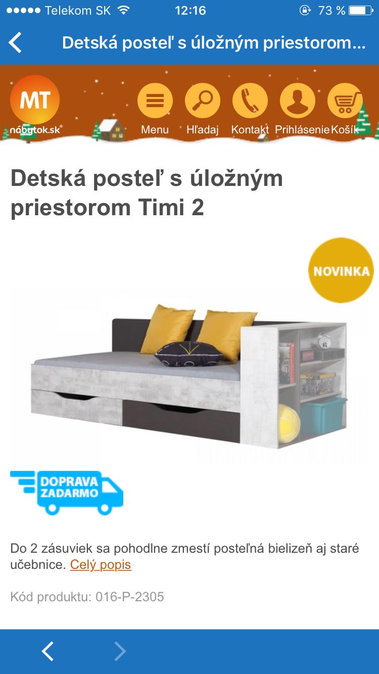 my mame v priebehu 4 mesiacov uz od vas manzelsku postel, matrac, komodu, a kupelnovu zostavu! a sme spokojni. dalej by sa zisla napr. https://www.mt-nabytok.sk/65032-akcia-studentsk... kedze za rok budeme mat skolacku. 😉