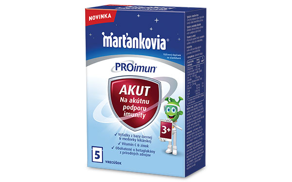 Vitamín C, zinok a výťažok z bazy čiernej obsiahnuté v produkte Marťankovia PROimun AKUT prispievajú k správnemu fungovaniu imunitného systému. Medovka lekárska upokojuje dýchacie cesty a podporuje ich zdravie. Inulín a GOS pomáhajú podporovať prirodzenú intestinálnu mikroflóru.