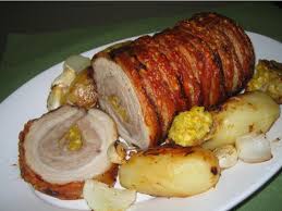 2. Bravčového mäso pečte vo veľkom pekáči, kožou hore.