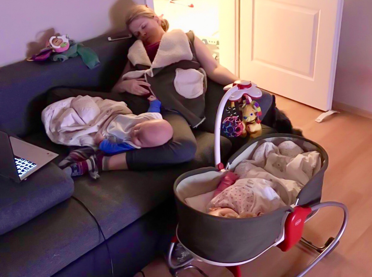 Boli časy, keď naše dvojičky naraz trápili zúbky. Muž bol v práci do neskorého večera a neexistovalo uspať detičky len položením do postielky. Nie raz ma muž našiel už v ,,bezvedomí,, obklopenu detickami. Rukou či nohou som v kolíske hupala jedného a druhého v náručí a potom som zalomila aj ja. Keď synovi rástli očné zúbky a preplakal aj 3-4h v kuse v jednu upršanu noc, som ho vzala do nosiča zobrala dáždnik a 2h som sa vonku v daždi prechádzala o tretej ráno až kým nezaspinkal. Pri prechádzke konečne neplakal a bol spokojný. Jednoducho som musela odísť z domu, aby nebudil druhé dvojča, lebo mat na starosti sama cez deň dve mrzute nevyspate detičky na druhý deň by bolo nepredstaviteľné. Do teraz má mrzí fakt, že mám len jednu náruč a dve detičky, ktoré sa jednostaj o moju náruč musia deliť aj keď ma často potrebuju obaja naraz. Teraz majú 2,5 roka a už im stačí len prečítať rozprávku na dobrú noc 🤗