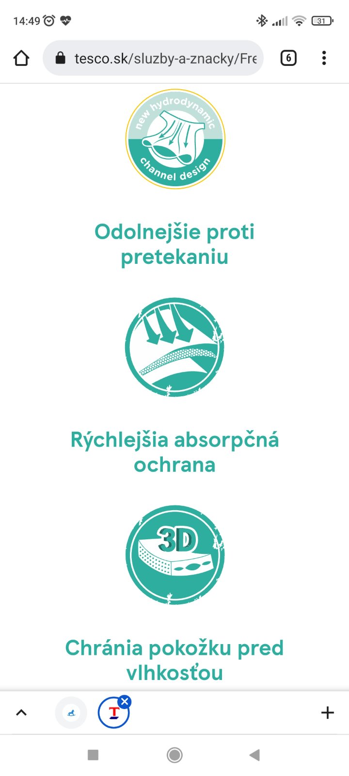 * špeciálna trojkanálová technológia na udržanie sucha v plienke, ktorá dokáže rýchlo odstrániť vlhkosť a zabráni jej zadržiavaniu na jednom mieste,