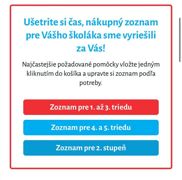 3 nákupné zoznamy, v prípade výhry mám záujem o Sadu školských potrieb