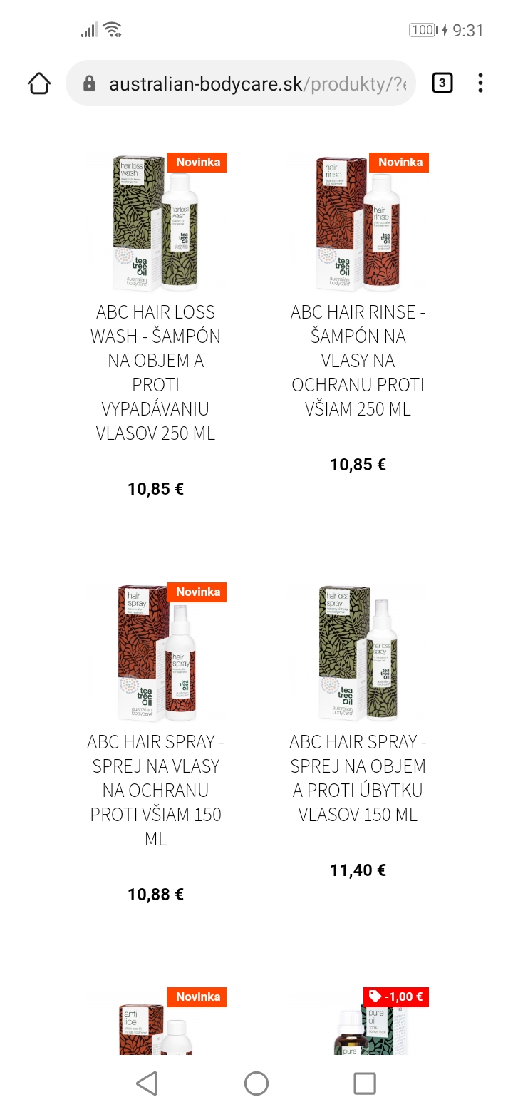 ABC tea tree oil šampón, vlasové tonikum, spray.