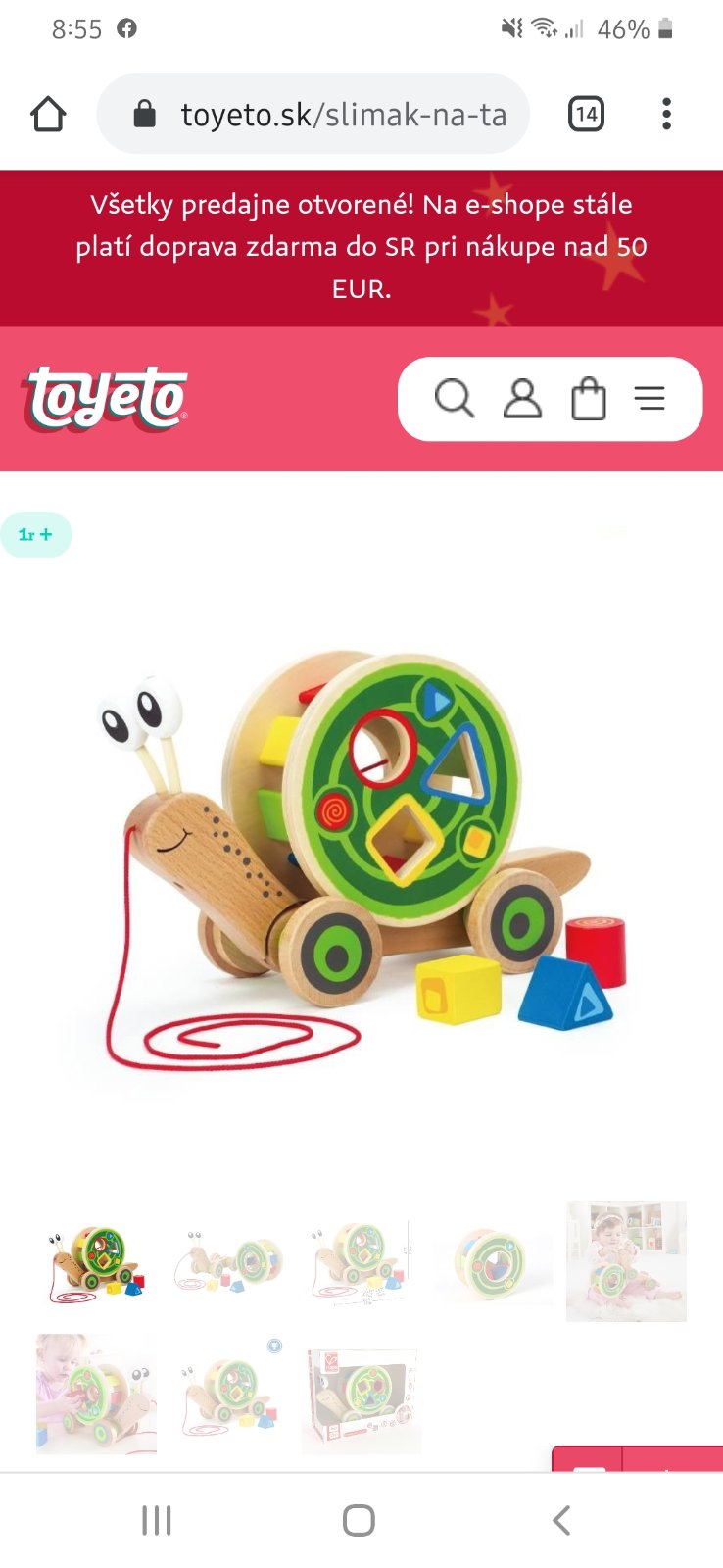 Toto by nás potešilo https://www.toyeto.sk/slimak-na-tahanie a určite by sme sa podelili aj so synovcom https://www.toyeto.sk/zatlkacka-so-xylofonom