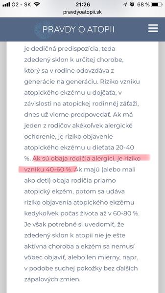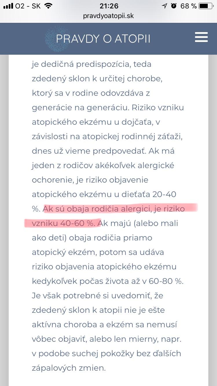 Aké je riziko vzniku atopického ekzému u dieťaťa, ak sú obaja rodičia atopici?
