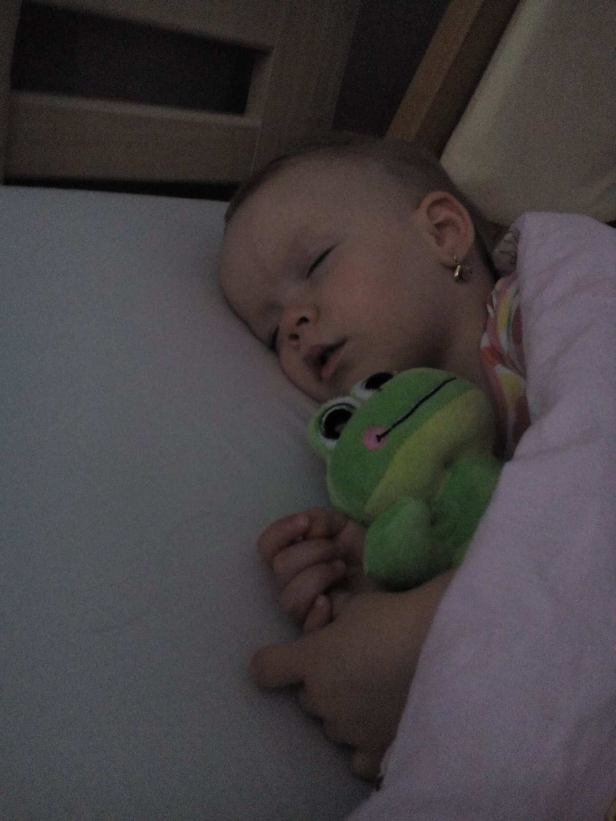 Moja zabko-maniacka. Zaba bolo jej prve slovo. Zabka bola vysnivana a ked ju konecne dostala, nepustila a nepusti dodnes z ruk...