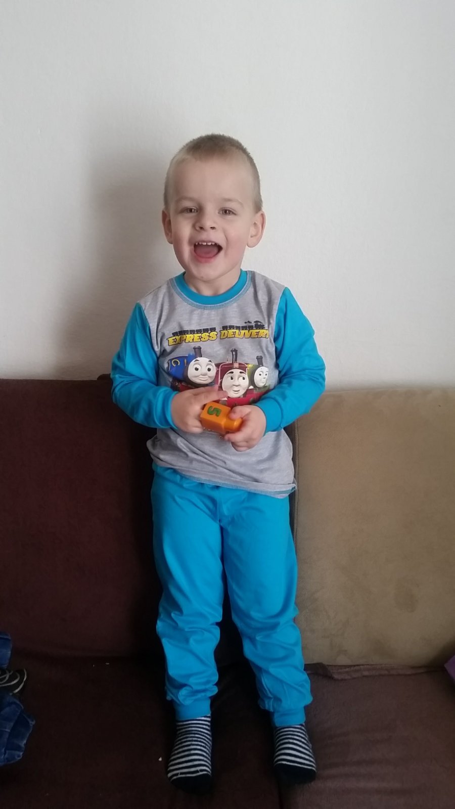 Radost z noveho pyzama s obrazkom Tomasa 🙂.