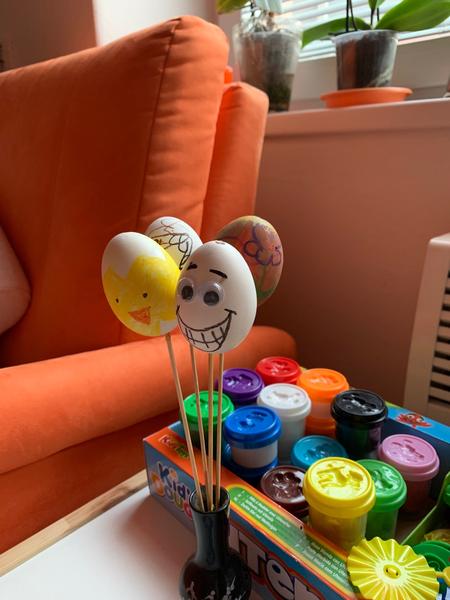 My sme robili rôzne kreatívne prace vždy na nejakú tému, keďže sme nemohli do škôlky tak škôlku sme si spravili doma ☺️, kreslili, maľovali, cvičili aj karneval urobili