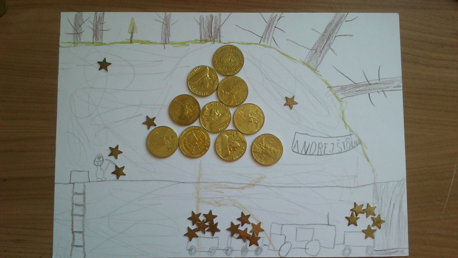 Nakolko som bola bez prace a teda aj bez penazi a nedalo sa stretnut s rodinou ci zavolat dcerke kamaratov aby oslavili s nami dcerkyne narodeniny ako ani kupit hodnorny darcek tak som kupila malickost ale schovala som jej ju ako poklad.nakreslila mapu a pomocou 16 napovied sa dostala az na miesto kde bol poklad schovany....