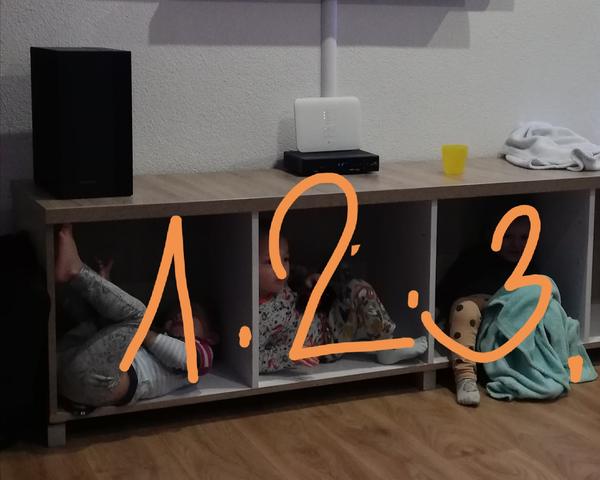 Najnovšie ma záľubu vopchat svoj zadoček všade kde sa dá ( už sme sa zmestili do suflika v kuchyni, do vedrá, do košíka na prádlo, do kočíka pre bábiky..... proste vyskúšame všetko)