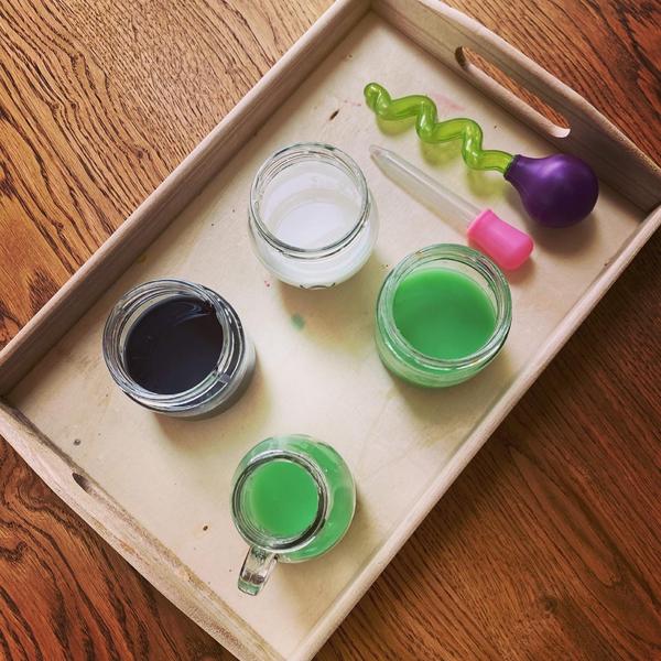 @sutaz napriklad taketo nieco, ucenie sa miesaniu farieb - plastelinou, vodovkami a pipetami primiesavanie ciernej a bielej na vytvorenie tmavozelenej a bledozelenej 🙂