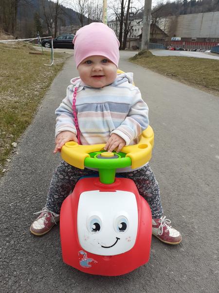 Veľa toho ešte nevymyslime, dcéra má 11 mesiacov a zaujíma ju teraz všetko možné, ale dostala trojkolku tak sa vozí a obzerá ☺️