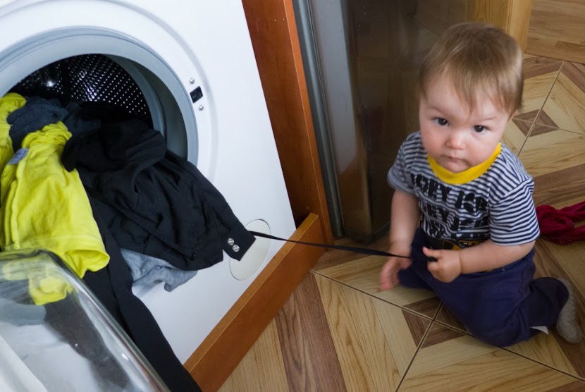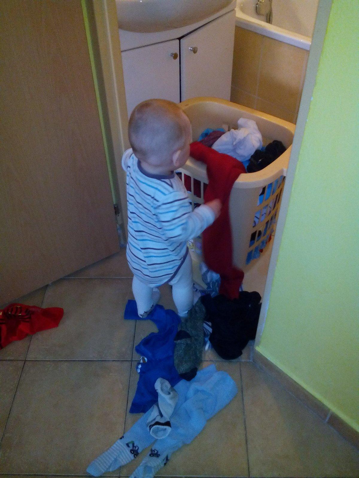 Ahojte! Ona je moja 15 mesačná pomocníčka pri praní, Karolínka. Rada mi pomáha, ale treba na ňu dávať pozor, lebo moje stratené veci často skončia v práčke 😀 😀 ako aj na fotke vidíte. Karolínka mi pomáha aj s vešaním, takže nemôžem sa na ňu sťažovať 🙂 Je to pre ňu zábava.