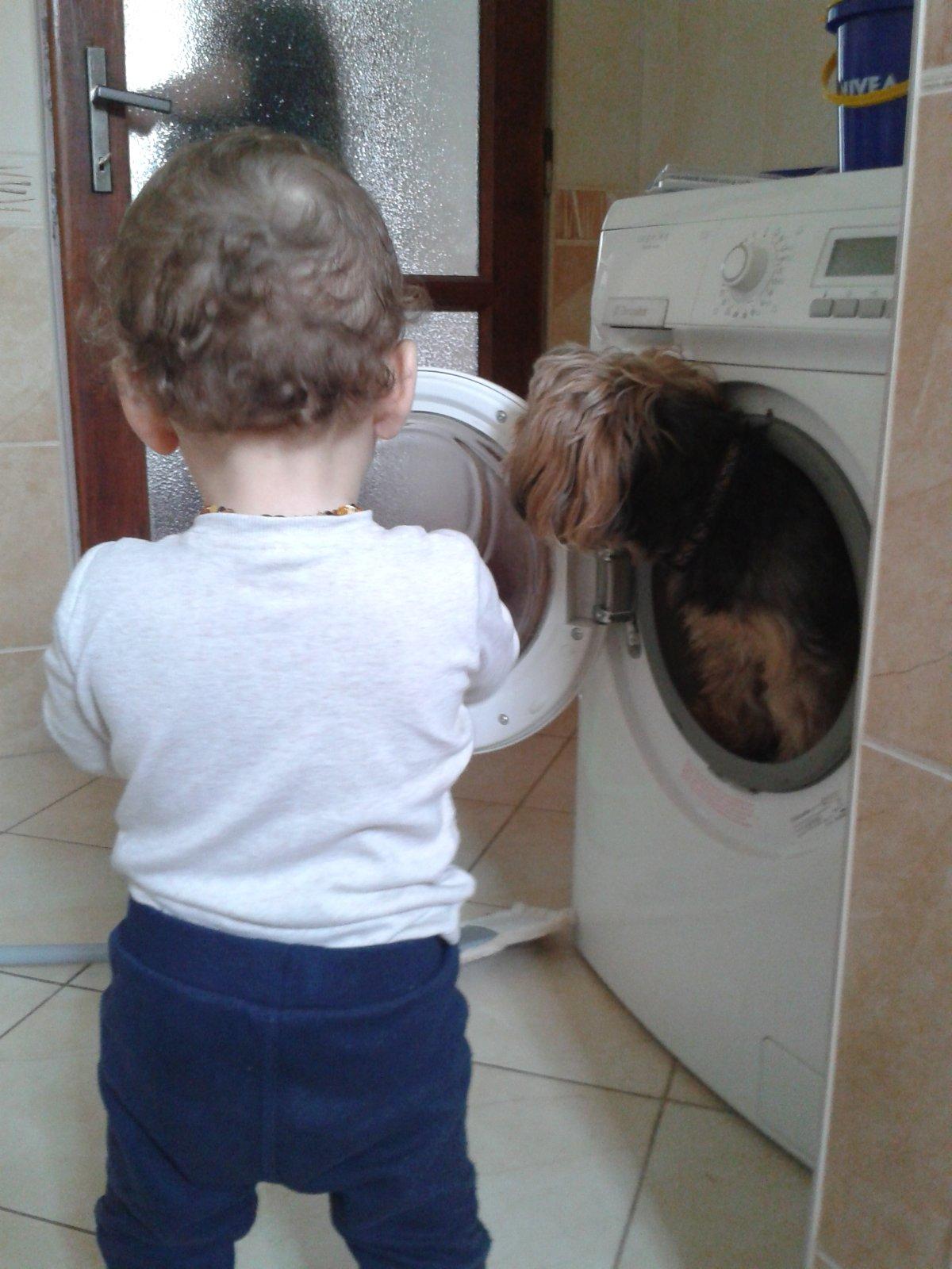 Nachystala som si prádlo ,v tom zazvonil kuriér a medzi tým mi malý"povitrieďival" špinavé prádlo 😀 a vôbec mu nevadilo že ja stojím za ním dokonca si ho aj fotím 😀