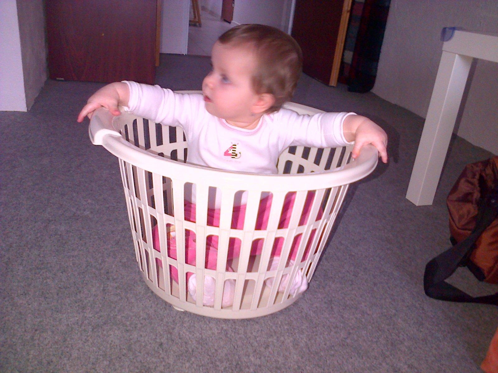 Obľúbené činnosti mojej dcérky - pranie a sedenie v koši na prádlo 🙂