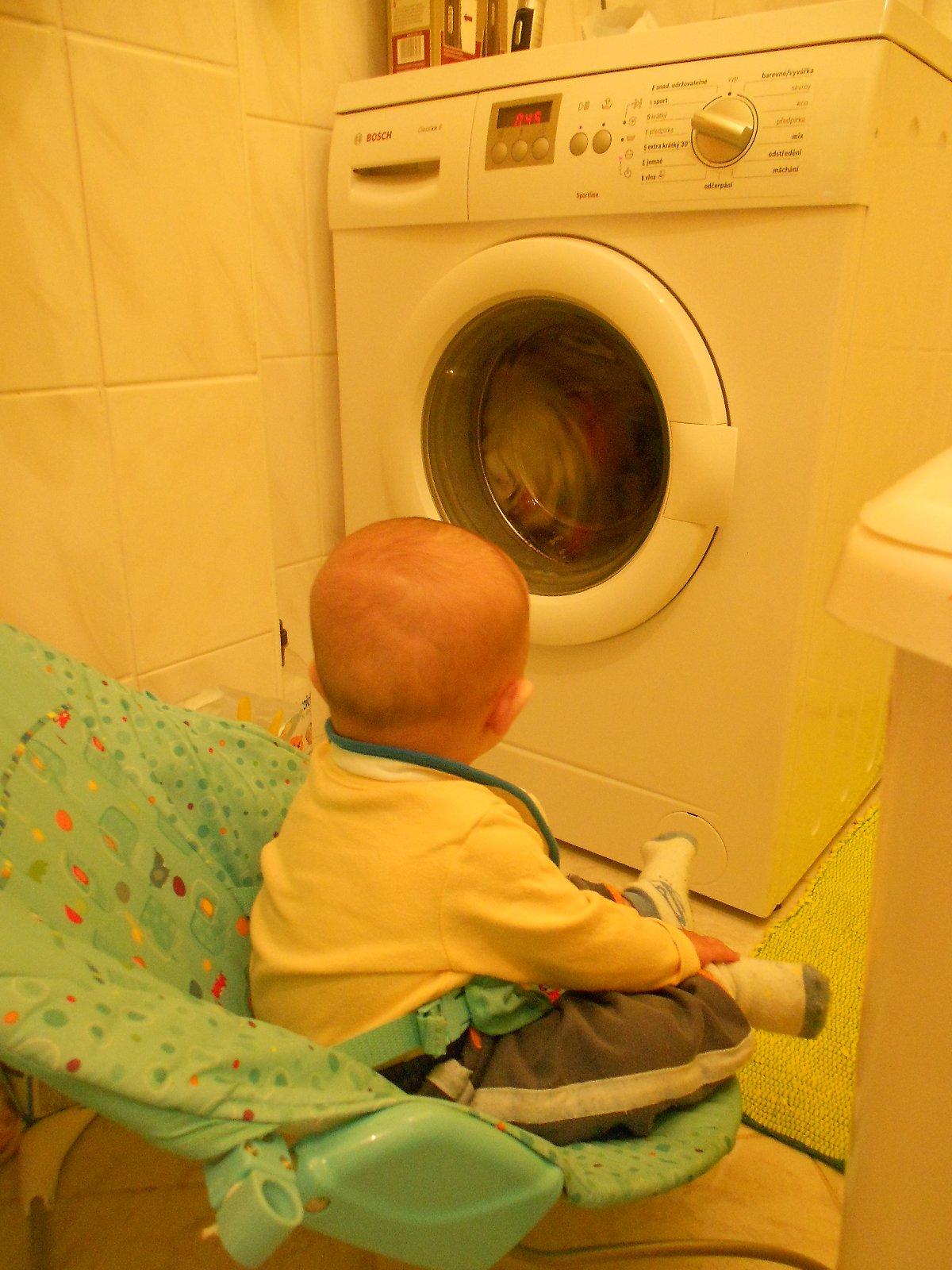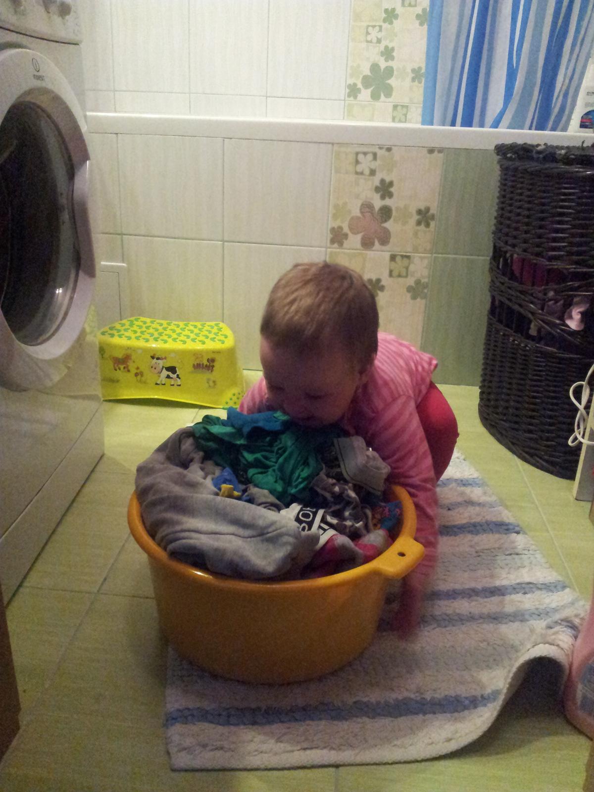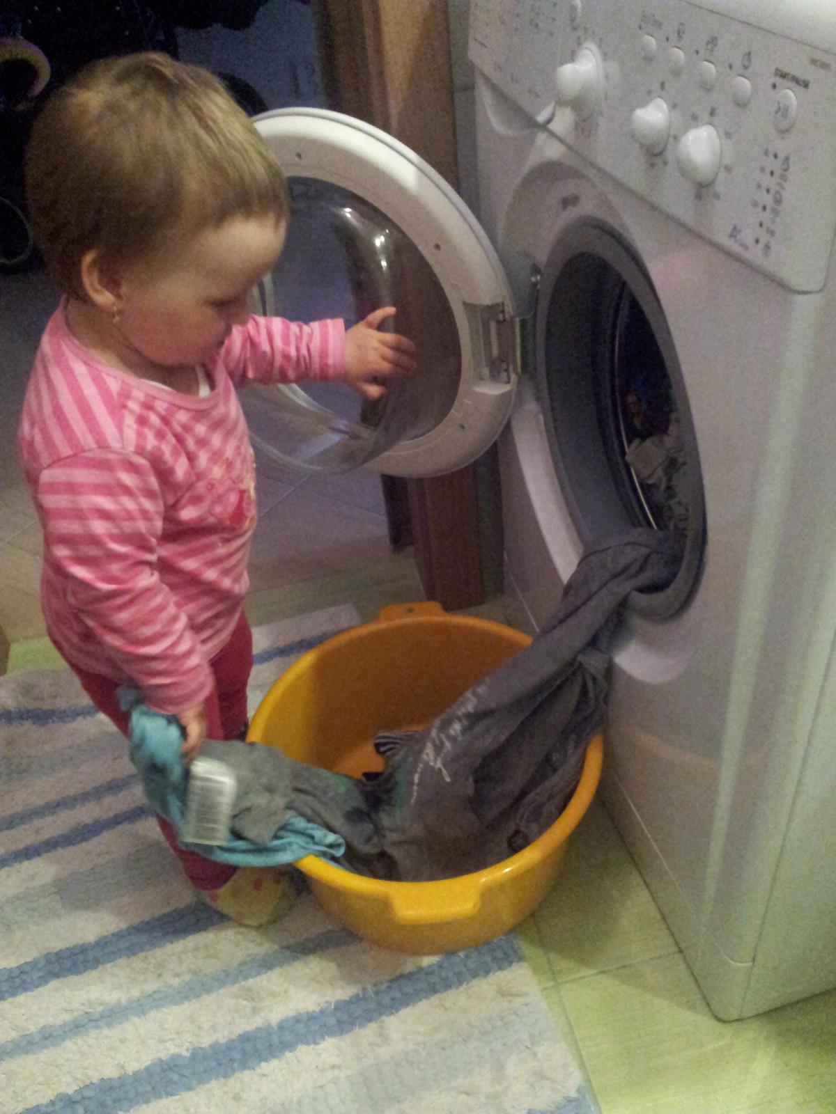 všetky moje deti radi "pomáhali" pri praní, veľakrát bola práčka lepšia ako telka... mne vyhovuje najviac krátky program na 40tke, rýchlo vyperie a je šetrný k prádlu 😉 na práčke by som uvítala funkciu načasovania prania, aby ma po príchode domov čakalo vyprané prádlo a netuchlo zbytočne v práčke 🙂 na obrázku moja najmladšia 😵