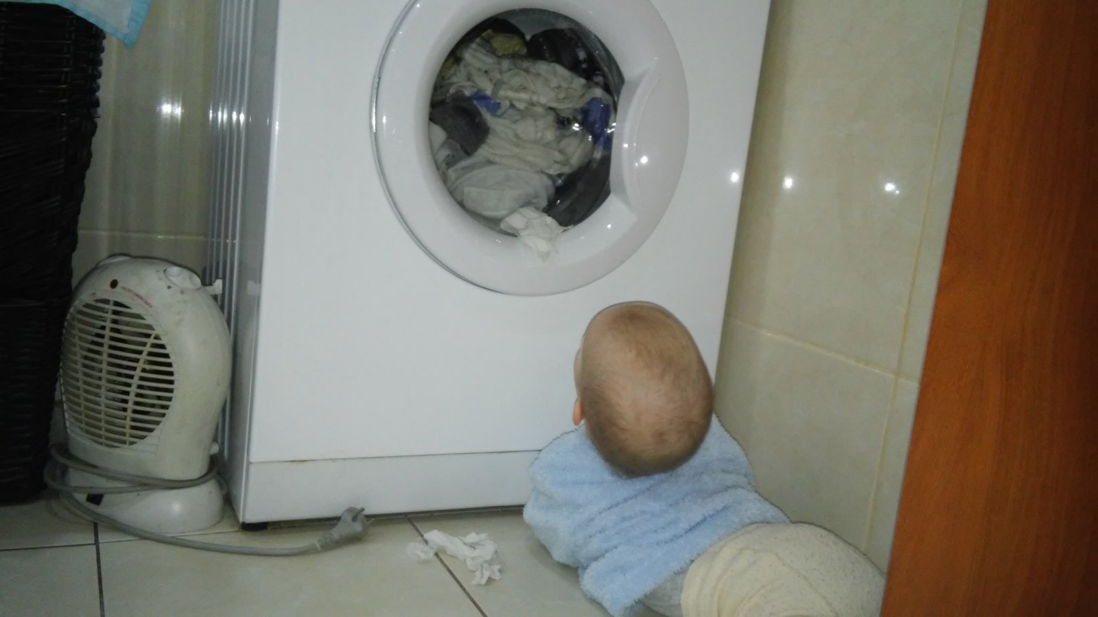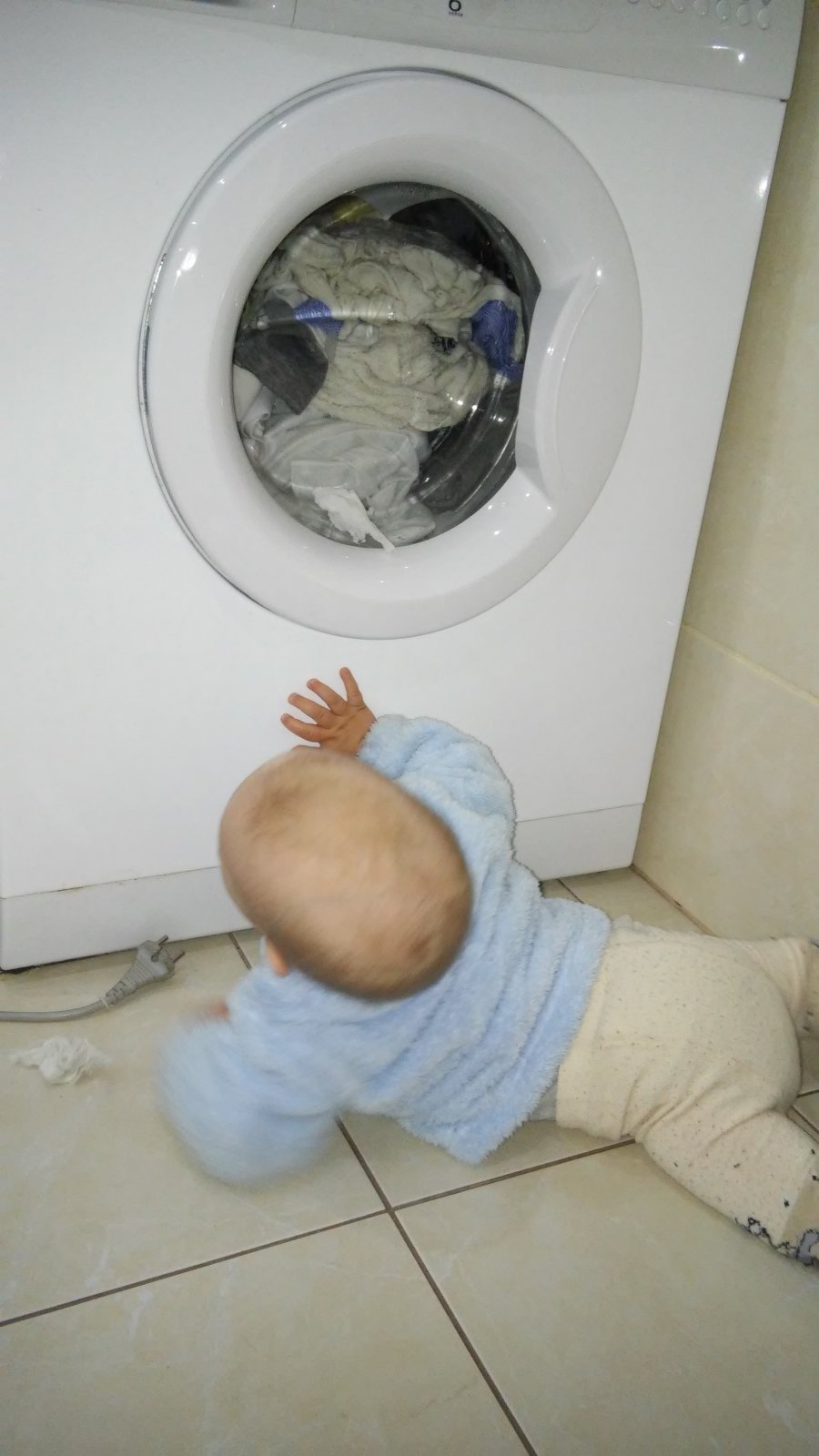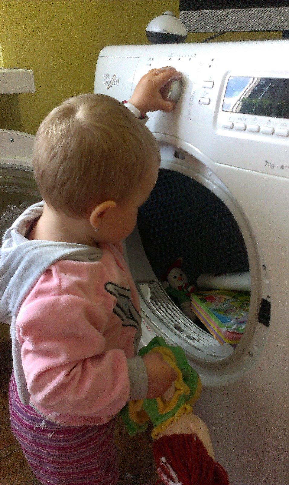 všetky moje deti radi "pomáhali" pri praní, veľakrát bola práčka lepšia ako telka... mne vyhovuje najviac krátky program na 40tke, rýchlo vyperie a je šetrný k prádlu 😉 na práčke by som uvítala funkciu načasovania prania, aby ma po príchode domov čakalo vyprané prádlo a netuchlo zbytočne v práčke 🙂 na obrázku moja najmladšia 😵
