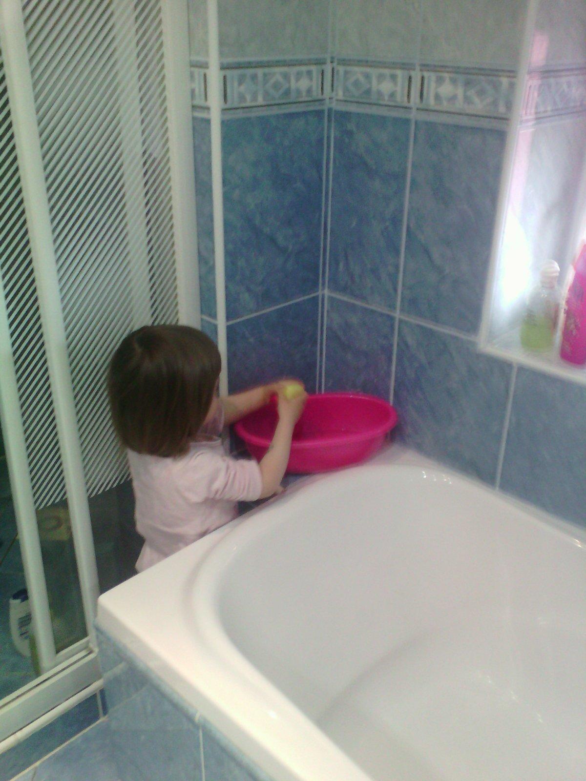Vecer idem naplnit pracku -nech mam nachystanu na zajtra ..otvorim dvierka, vali sa prud vody..ja uz vidim dicapria ako sa topi a ako svetla blikaju, rychlo zavrem..skoda, digitalna vaha sa uz stihla utopit a teraz lezi na dne kupelne..ja po clenky mokra, mala sa rehli vo vani a chlap nadava a v kupelni mame novy bazen.