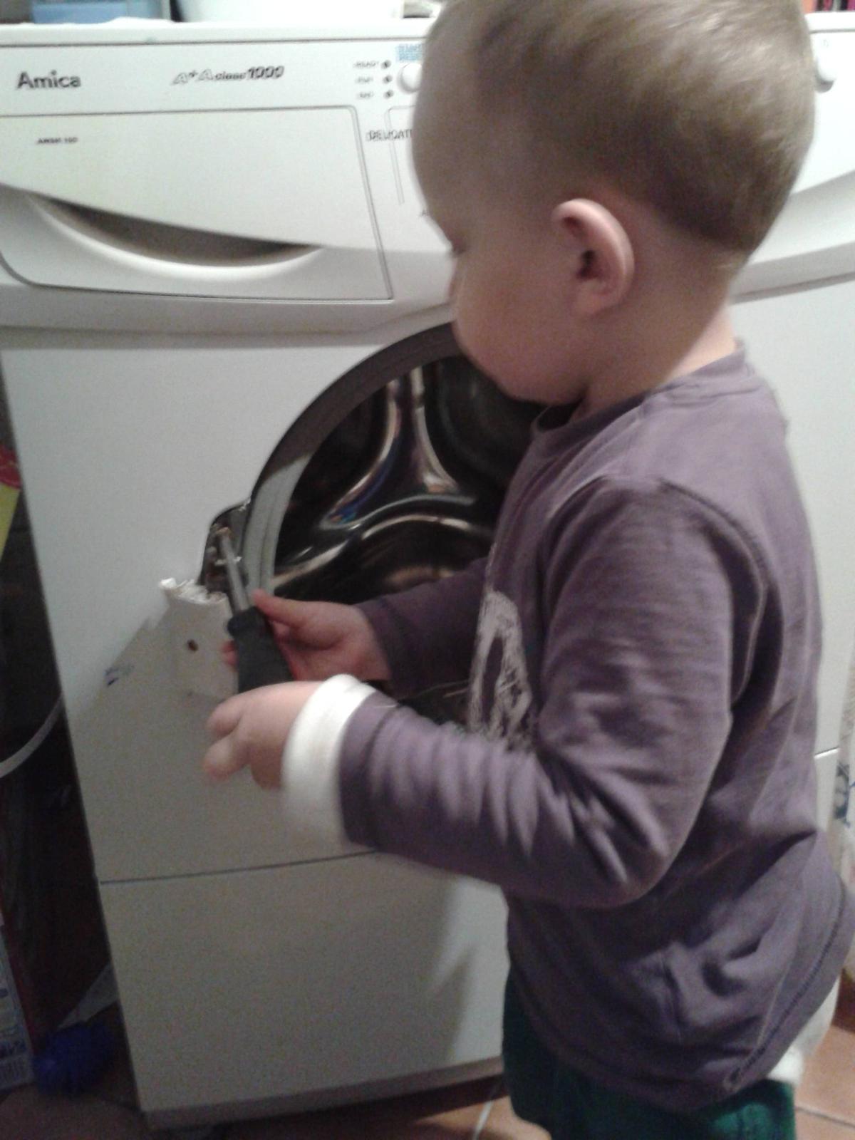 A chytá nám ju hrdza. Pri každom praní mi okolo nej pobehujú moji traja malí pomocníci. No ten najmladší jednoročný saju pravidelne pokúša zastaviť, akosi mu to nejde. Po tom ako doperie, vždy skúma vnútro a dvierka - ako je to možné že sa krúti a krúti a dvierka nie a nie otvoriť. 🙂
