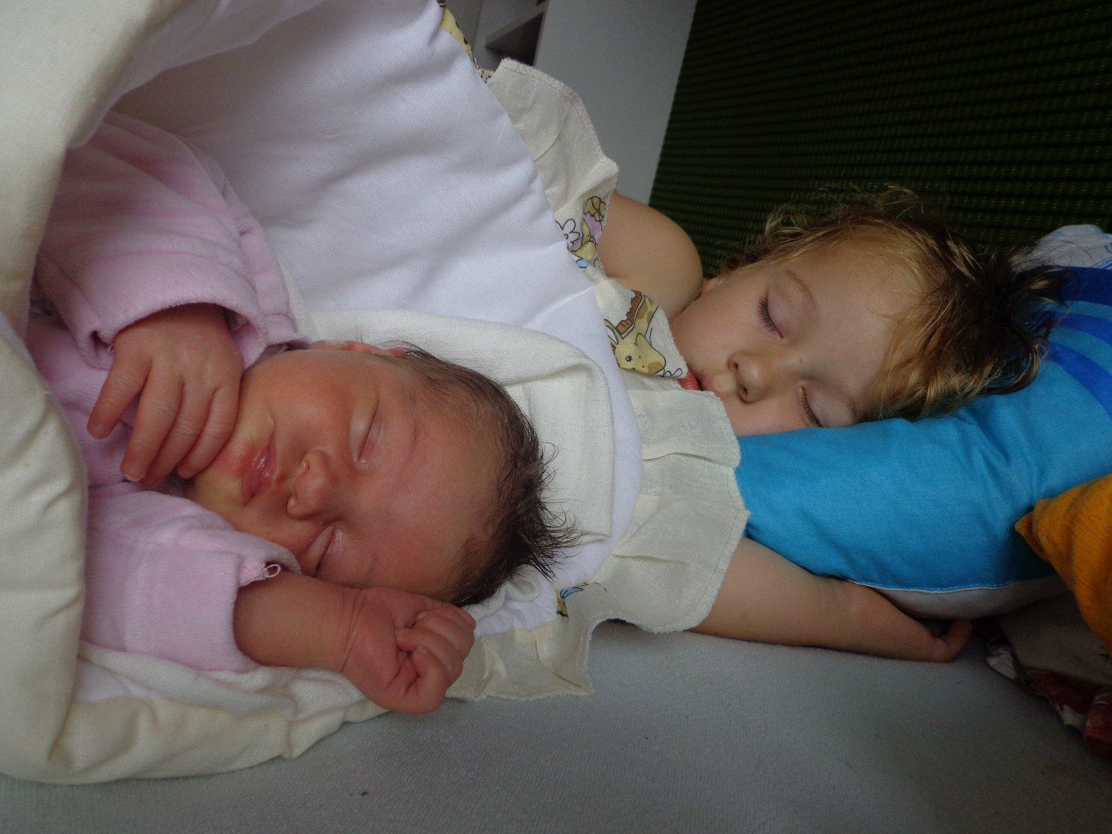 Staršiu dcérku som kojila 2r. a 4 mesiace a mladšia má momentálne 10 mesiacov. Pripájam najspokojnejšie foto našich princezien aké doma mám :D Ináč sú to nespavé potvorky :D