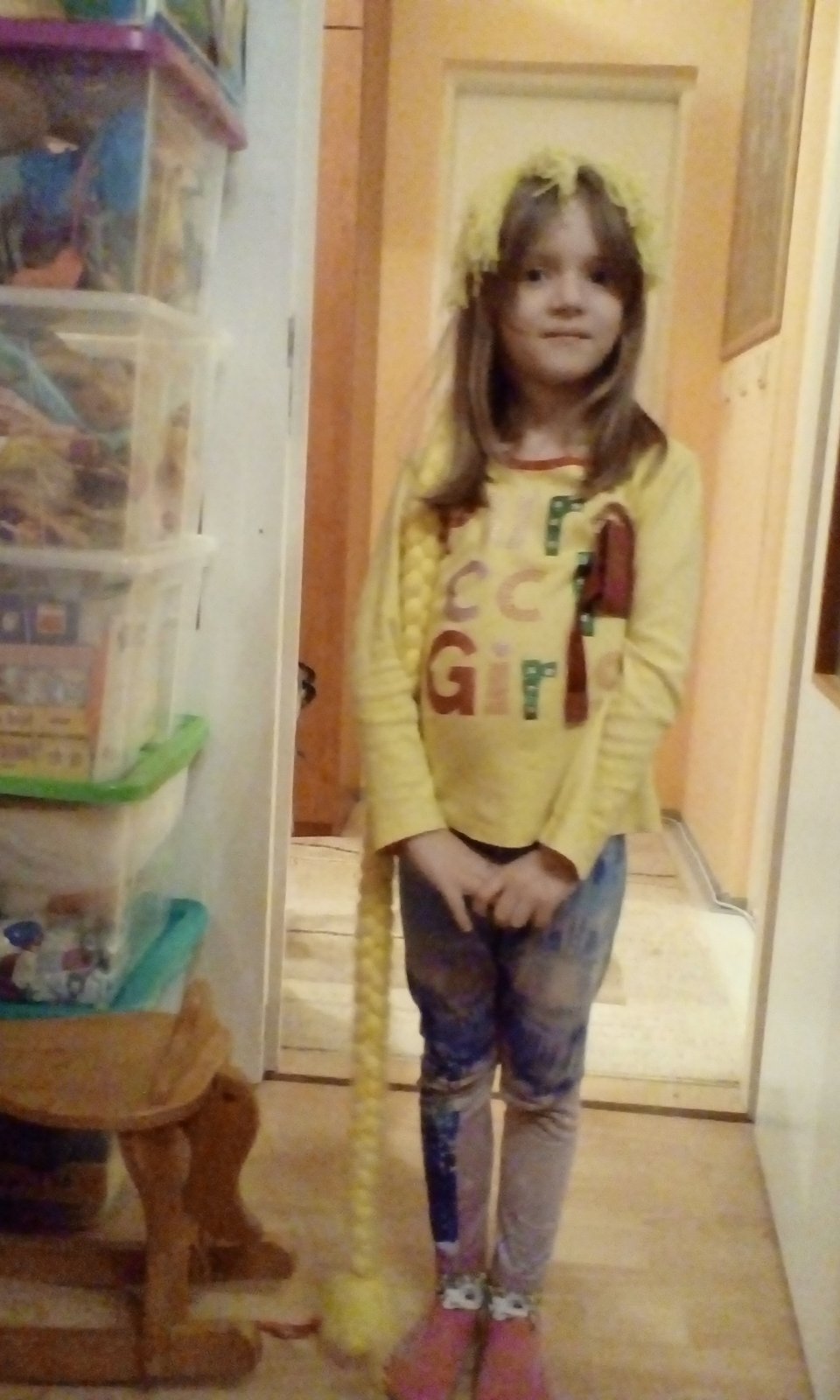 No moja dcérka túži ísť na Hallowen, ále vraj chce vyzerať krásne a tak bude mať kostým e krásnej nočnej prnceznej s dlhými žltými vlasmi, tak sne sme vyrábali vlásky dlhé a ešte nás čakajú usiť šatky a tak aspoň taktoa tak ani na hallowen nemusíme ísť iba úplne čierny, ale naša chce žiariť vlasmi a tak uvidíme ako dopadneme, krásny deň prajem