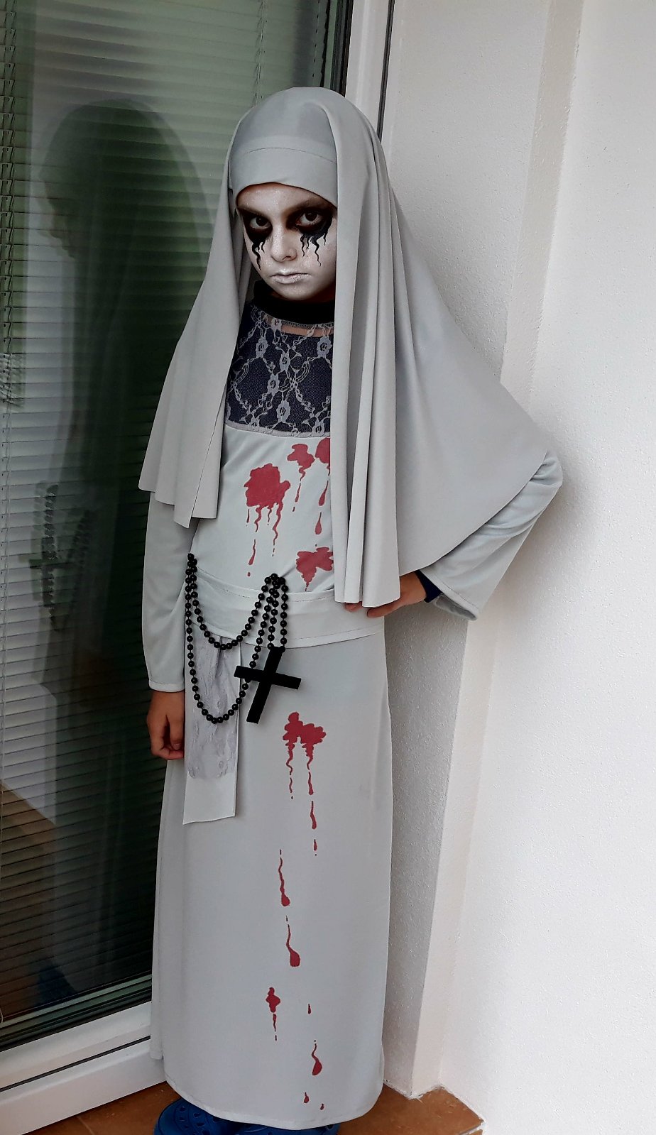 Halloweenský kostým sme ešte nevyrábali ale je to dobrý nápad.mam 2 deti a tie si často obliekajú kostýmu čo majú doma z karnevalov.musime na nich popracovať.pre dcérku bielu pani alebo ducha a pre syna pavúka,možno potom by sa ich prestal báť.