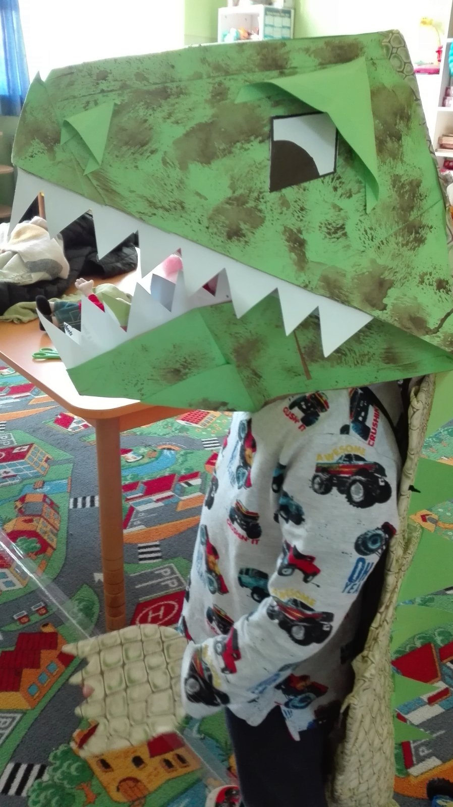 Fotku žiaľ nemám, ale bratrancovi sme vyrobili kostým žraloka 😀😀😀