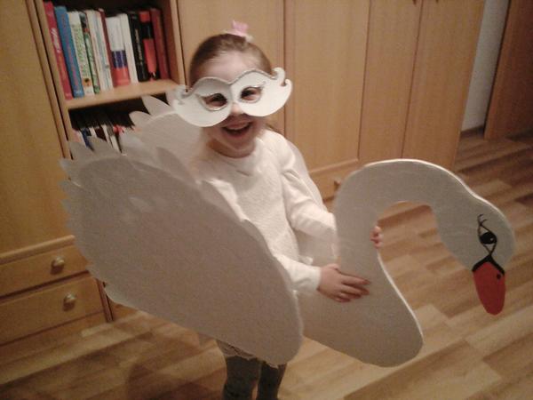 Z mojej neterky sme robili malú mačičku 🙂 chlpatá biela vestička, biele nohavice, ktoré sme zničili čiernymi fľakmi, ušká sme robili spolu a prilepili na čelenku a chvostík sme urobili z pančuchy vyplnenej vatou. Bola k zožratiu :*