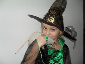 Mojej Karinke som ušila kostým bosorky ktorá nosila na pleci netopiera 😊