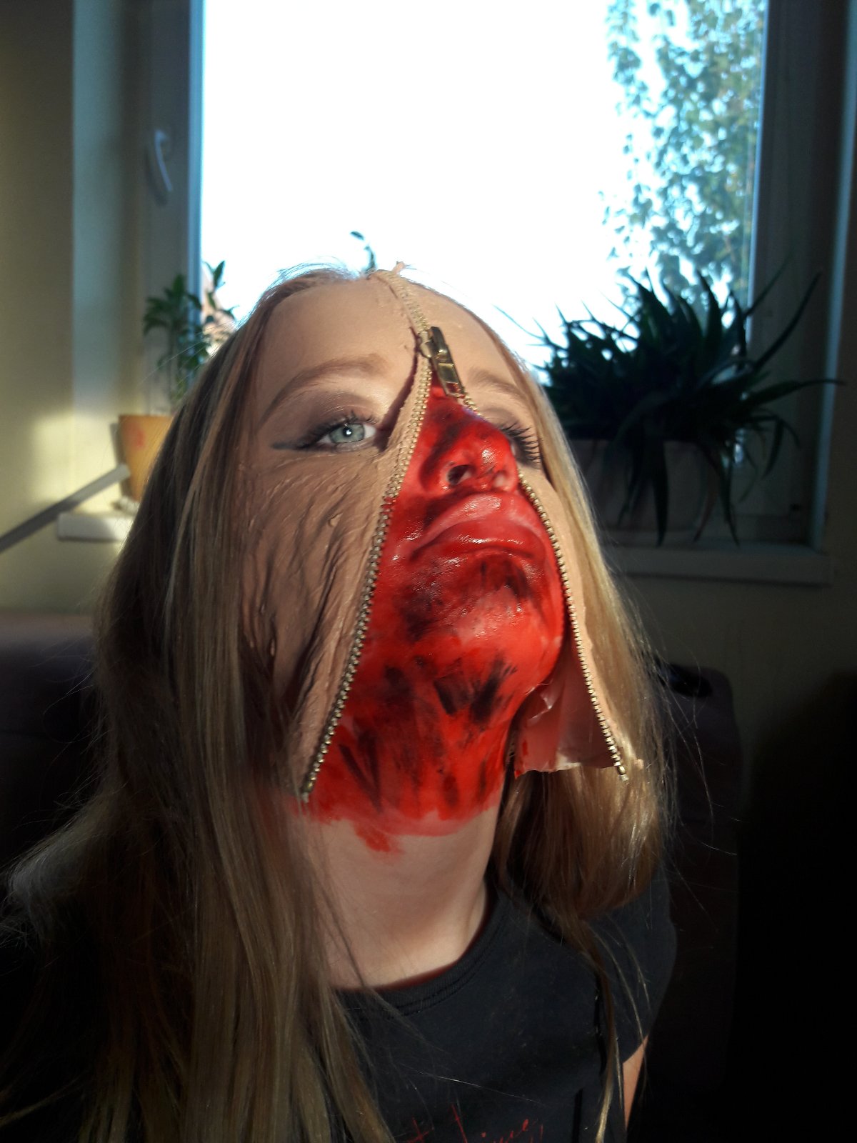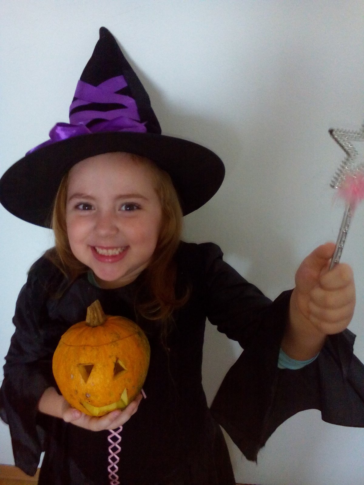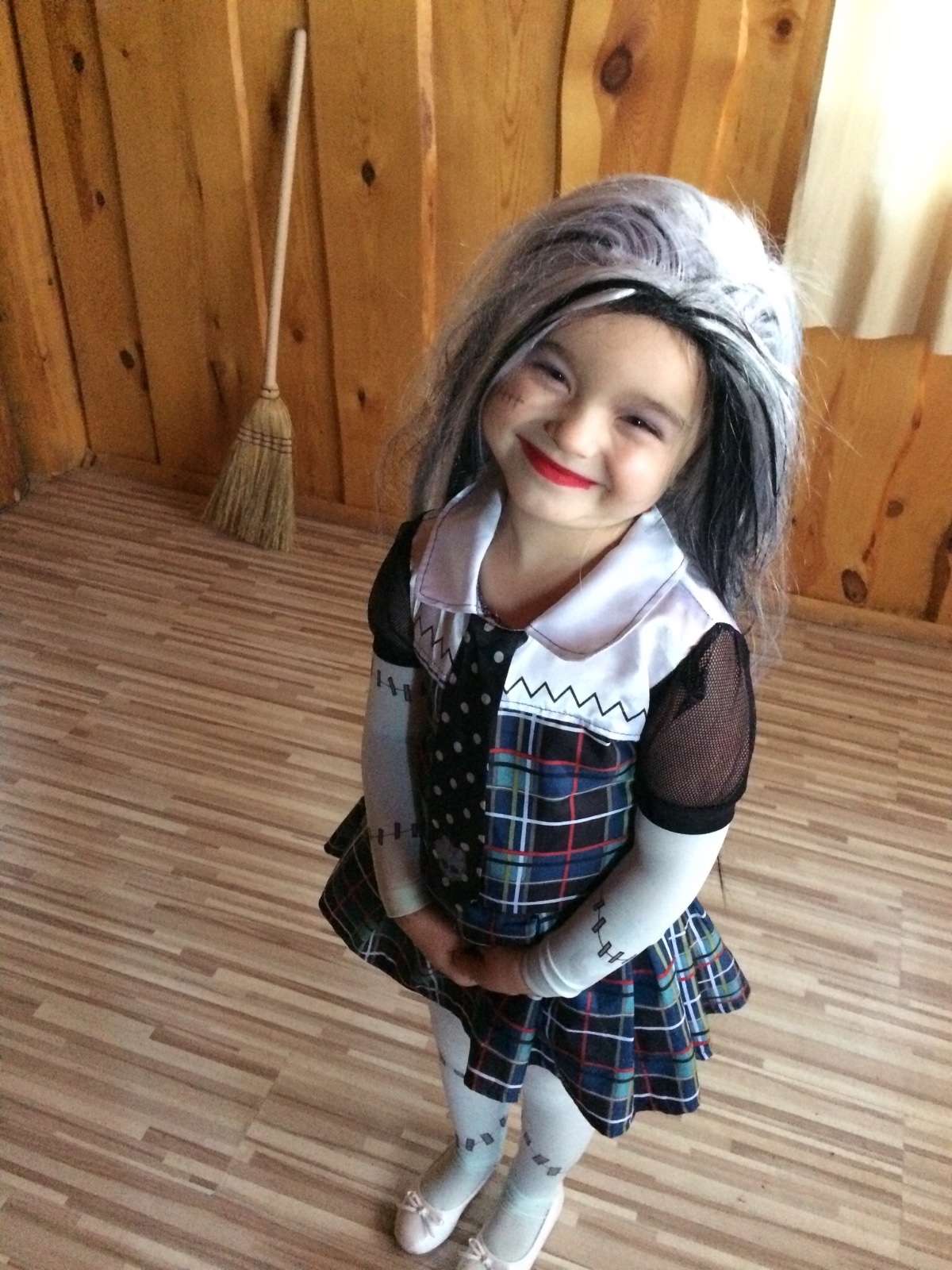 My sme sa na haloweensku party pripravili jednoducho, dcera si obliekla sietovane pancuchy, saty, na tvar som jej nakreslila pavucinu s pavukom, k tomu sme pridali fialovy ruz a ocne tiene, na vlasky si dala celenku s netopiermi kupenu v KIK a kostym bol na svete 🙂