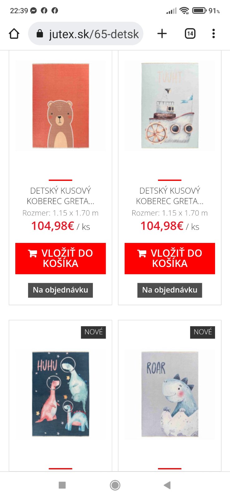 Uveďte aspoň tri zvieratká, ktoré sa nachádzajú na detských kobercoch z našej ponuky. Nápovedu nájdete na jutex.sk