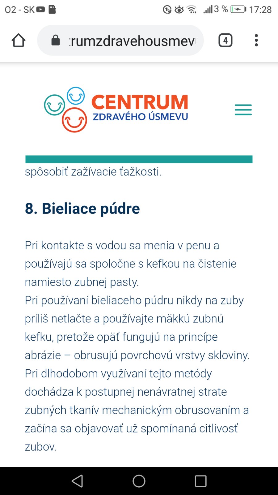 So starostlivosťou o ústnu dutinu je spojený rad otázok, na ktoré je často ťažké nájsť správnu odpoveď. Ste si istí, že sa o svoje ústa staráte správne? Viete ako efektívne bojovať s citlivosťou zubov? Staráte sa dobre o zúbky vašich detí? Centrum zdravého úsmevu je unikátny projekt, ktorý vznikol s cieľom poskytnúť širokej verejnosti odborné rady a správne odpovede na tieto a ďalšie otázky spojené so starostlivosťou o ústnu dutinu.