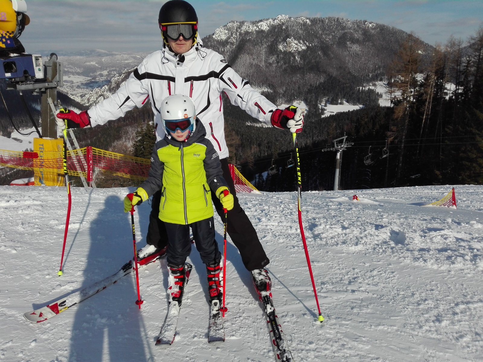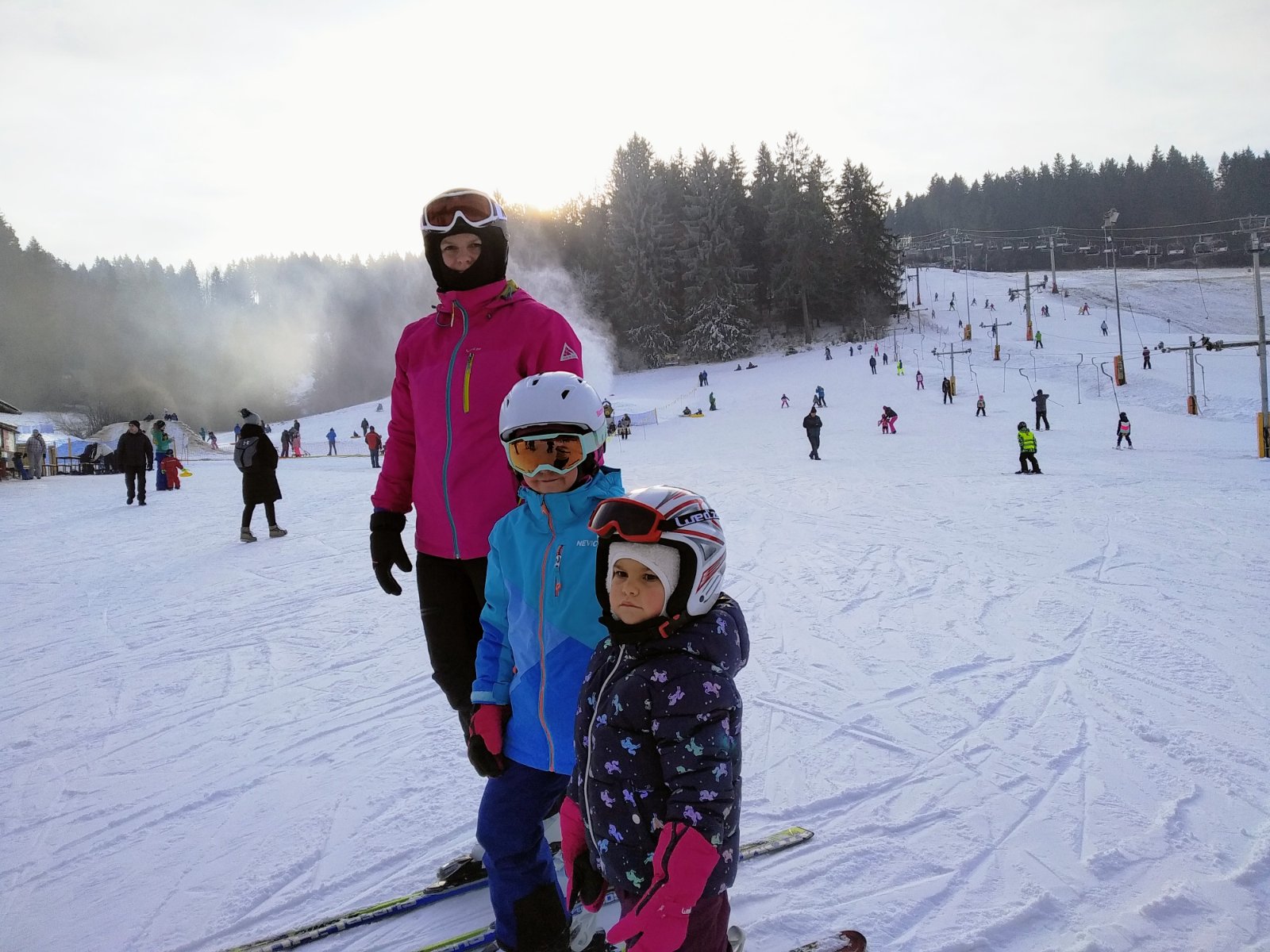 prvá rodinná lyžovačka vo štvorici, už aj s najmladšou lyžiarkou🙂tatino foti🙂))