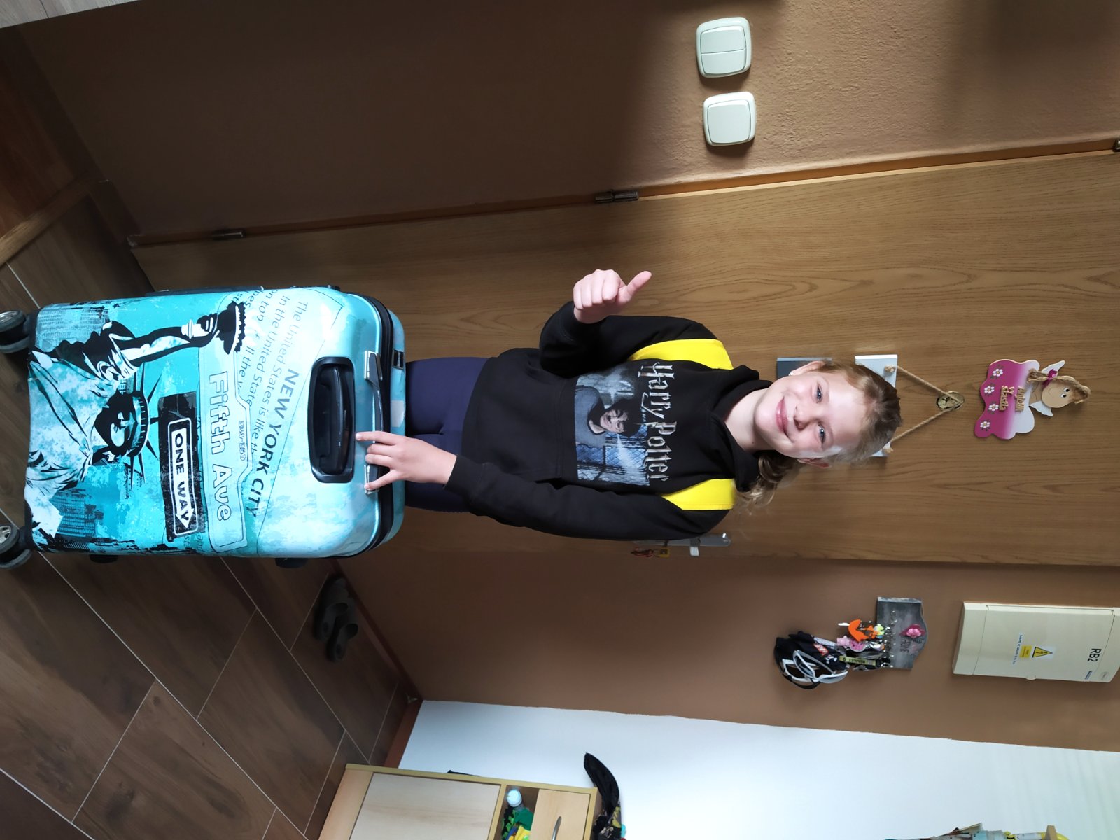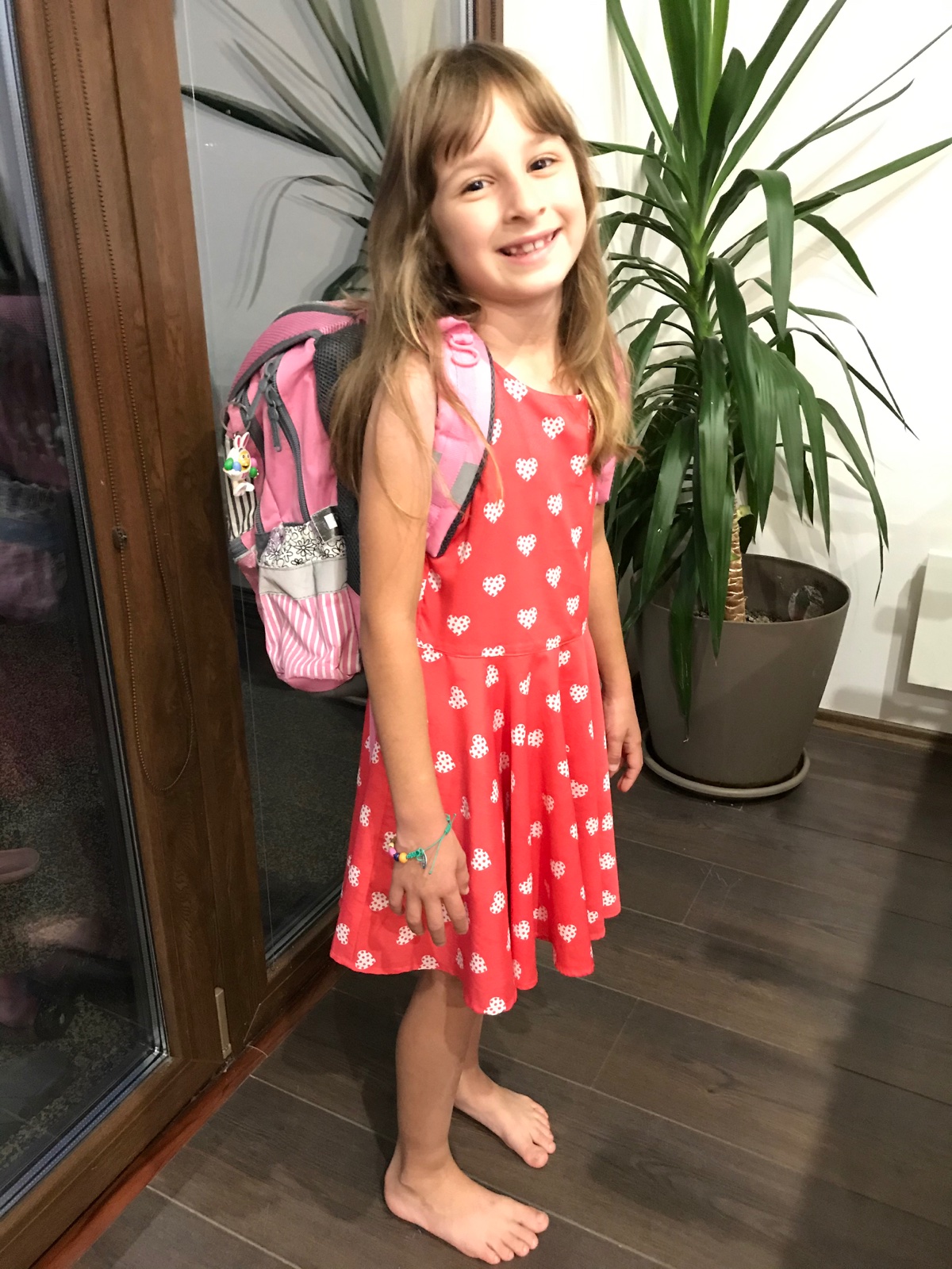Na fotke je nasa prvacka - v prvy skolsky den 😍.