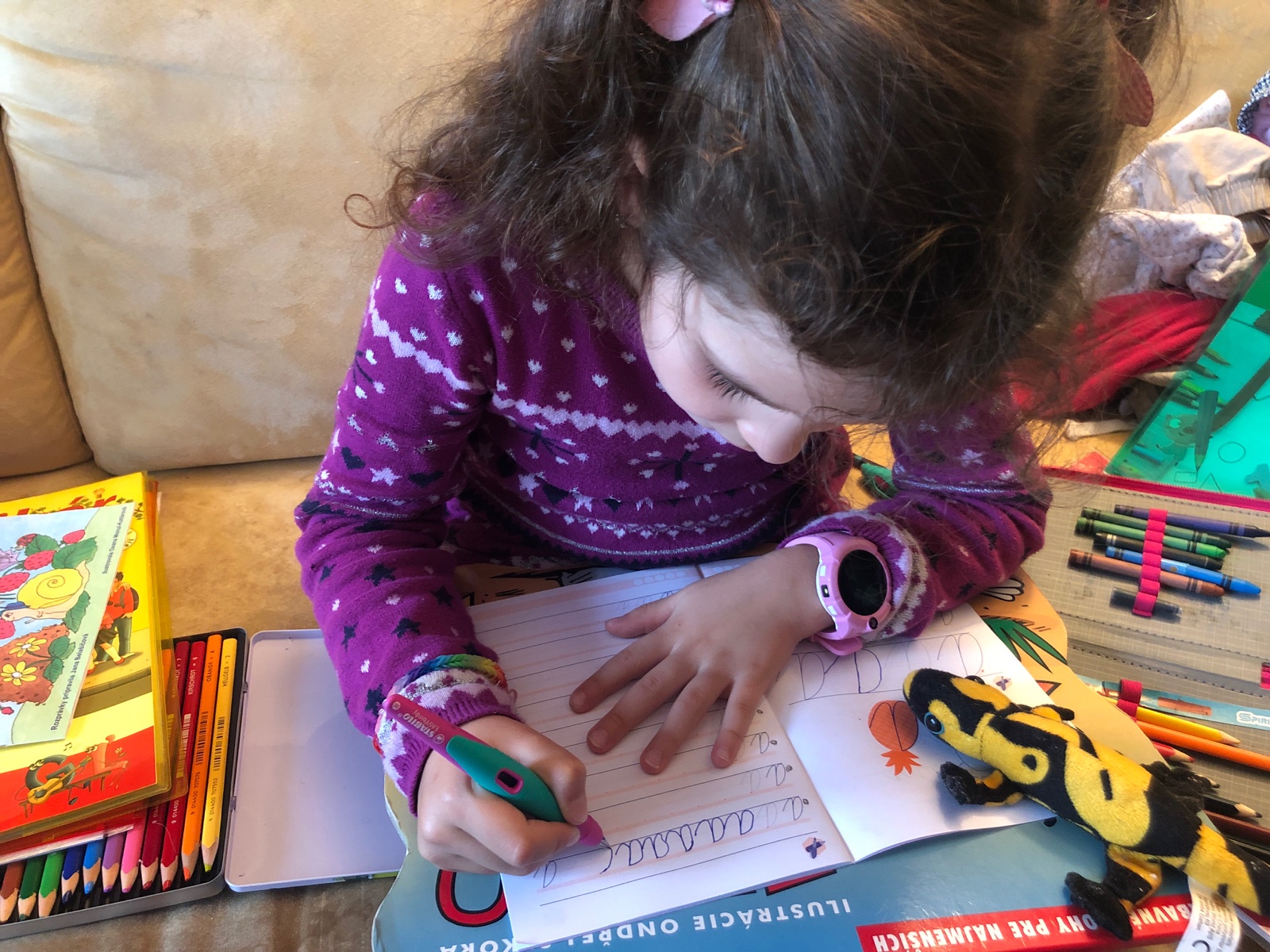 Moja velkacka. Tak toto je prosím prvá domáca úloha s perom. A teraz sa narodila.. 🥰 takto využívame čas kým mladší súrodenci spia