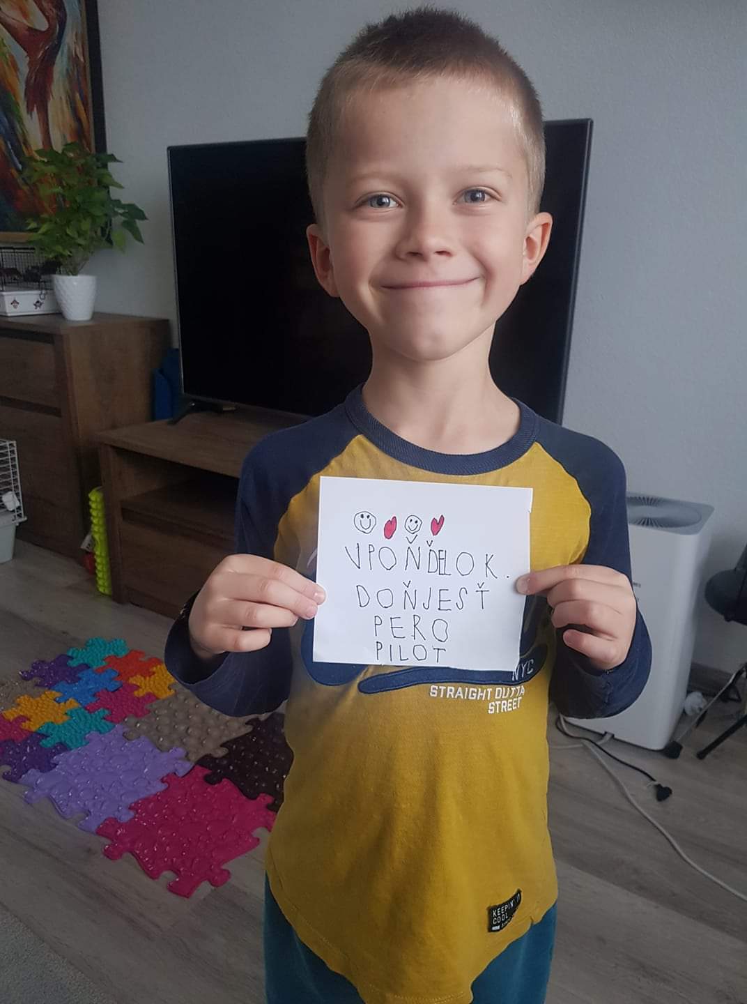 Náš Miško prváčik si sám prvý krát poznačil oznam pani učiteľky, aby nezabudol do školy priniesť 1x pero. Vnímal to ako výnimočný deň, kedy začne písať konečne perom 😄. Sme na neho veľmi hrdí 😍.