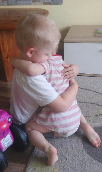 Ja milujem kazdu foto mojich bambulkov,pretoze su spontanne,a aj po mesiach z nich citim ten moment. Avsak najsilnejsou pre mna je tato. Skoro sa mi nestihol nacitat fotoaparat na mobile, ale stihla som ich odfotit. Vzdy si daju pusinku,objimu sa,ked odprevadime synceka do skolky, ale idu spinkat. Ale tu sa hrali, a zrazu sa na seba pozreli a maly vravi sestricke,ze sa chce polubit. A verim,ze tu lasku a radost,ze sa maju navzajom,citite aj vy.