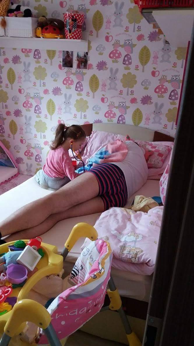 Tak ja uplne z ineho sudka... zacnem asi tak ze kazdemu chlapovi by som priala mat dceru!!! Prosim pekne takto sa nasa 3 rocna Katka starala o svojho tatinka a jeho kamosku opicu 🐒🐒.