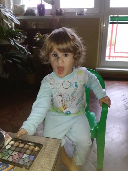 Táto je z dnesneho rána😁 keďže všetko opakujem po mamine musím sa aj namaľovať 😂