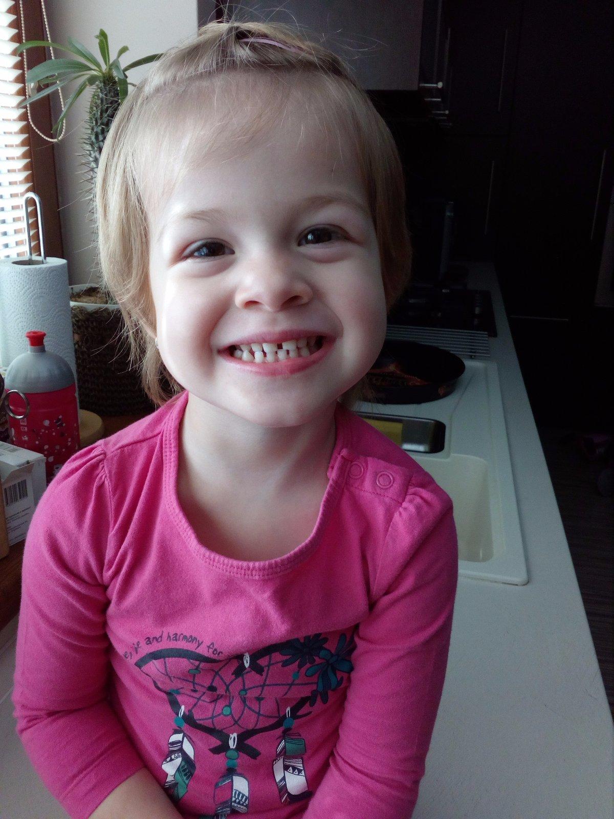 Moja mala opička, tesne pred kiahnami a čerstvo po chorobe. Milujem tento jej úsmev a tu detskú bezstarostnu dušičku a náladu. Je to moja vytuzena láska.
