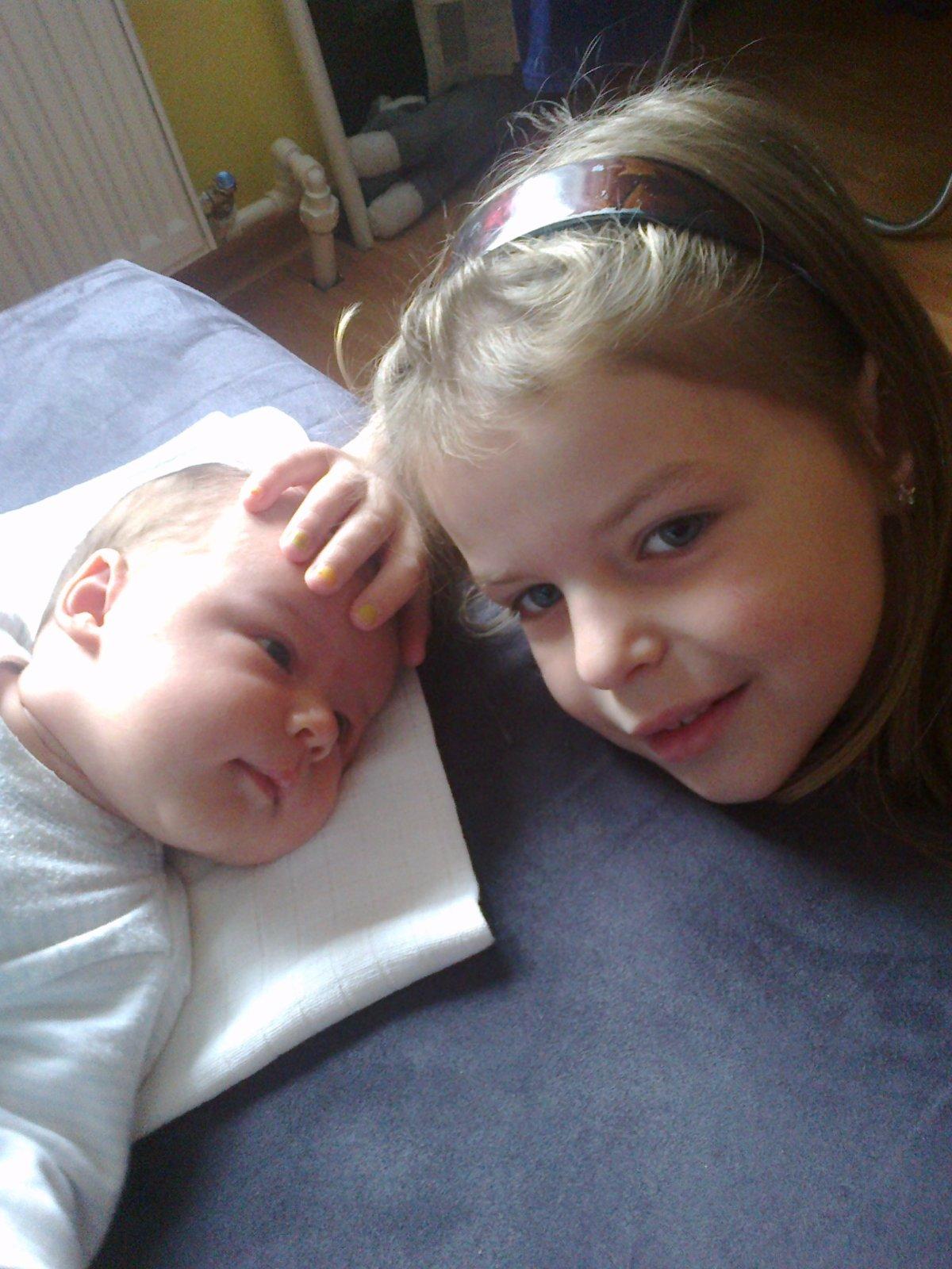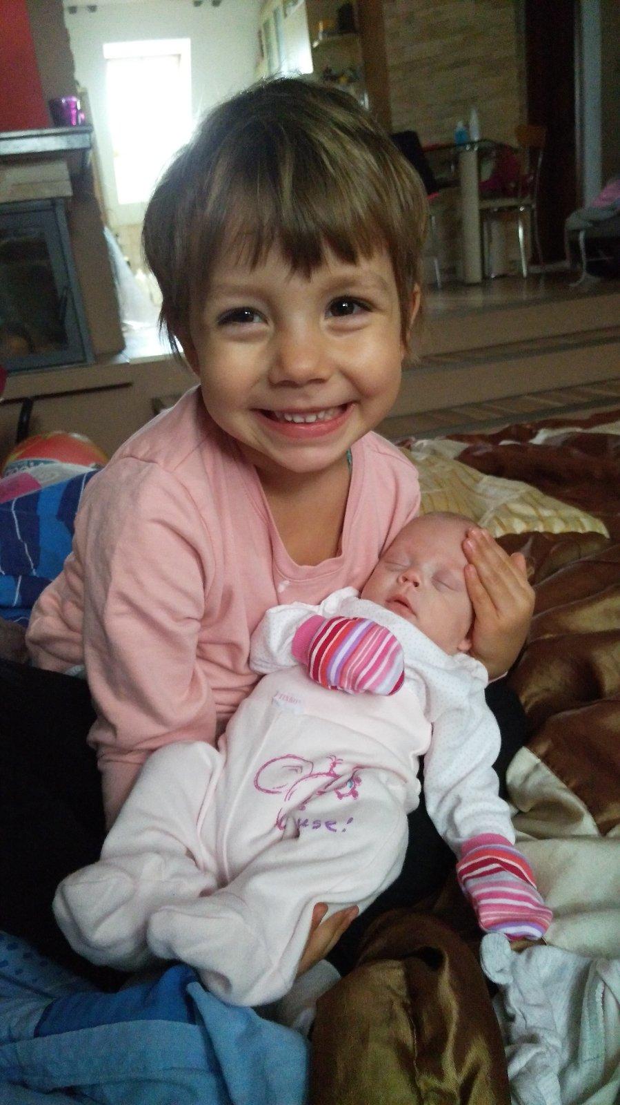 Tato fotečka je pre mna najkrajšia pretože su na nej moje dve baby. Takto vyzera štastny výraz na tvaričke staršej sestričky, ktora po prvý raz drží v náruči svoju maličkú sestričku o ktorej stále len počúvala od nas od svojich rodičov, ze nejaka sestrička existuje a dôvod? Mladšia sesrička sa totiž narodila predčasne v 25tt, tým padom musela v nemocnici stráviť dlhe tri mesiace. A keď konečne prišla domkou nemohla sa od nej odtrhnuť. Bobatka moje 💜