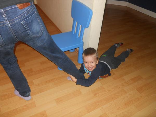 Ťažko vybrať najmilšiu fotku či príbeh, lebo každá jedna fotka má svoj milý príbeh 🙂 Takže by ich bolo nespočetne veľa, ale jednu predsa prikladám, keď si náš malý spravil z tatinovej nohy ťahač a veľmi sa na tom bavil 😀 nebolo konca kraja tejto zábavy 🙂