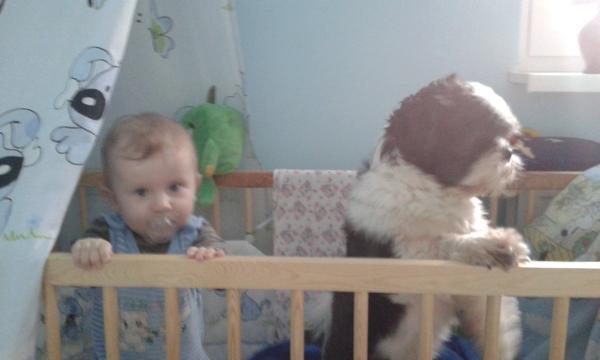 Moja naj foto je tato a pribeh maly plakal a nechcel zaspat tak plakal s nim aj psik a chcel ist k nemu tak psik sup do postielky a obaja boli spokojny🙂